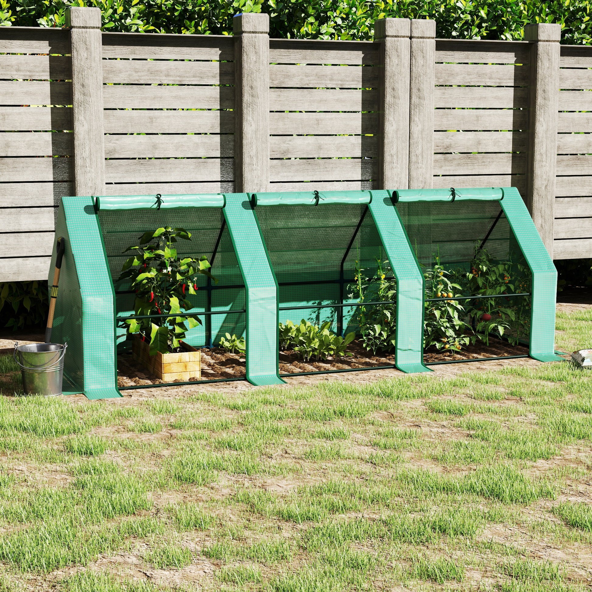 Outsunny kas met 3 oprolramen, PE-gaasfolie, stalen foliekas, kas voor balkon, tuin, tomatenkas 270x90x90cm, tomatenkas voor groenten, bloemen, planten, groen