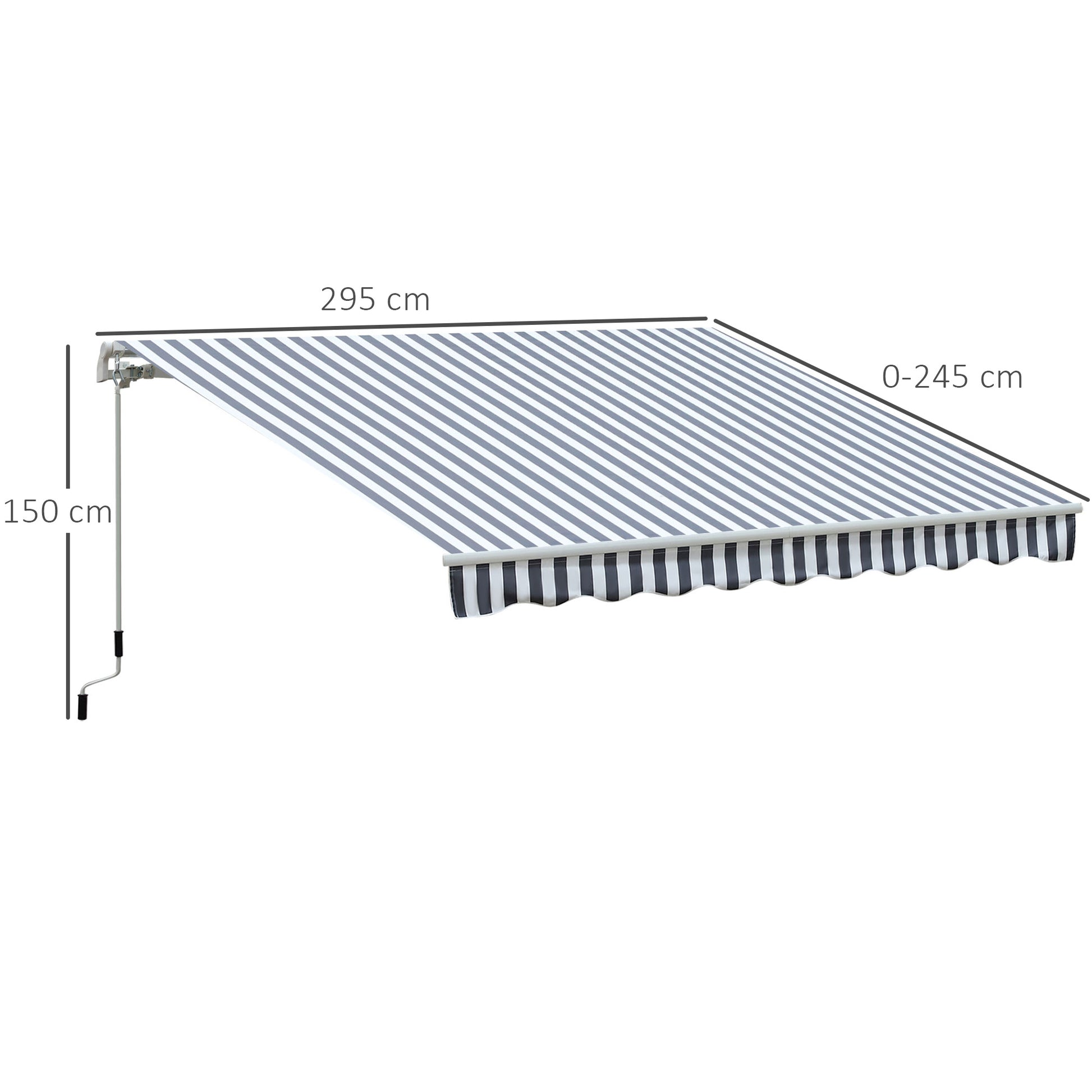 Outsunny zonnescherm, knikarmzonnescherm, zonnescherm, handslinger, balkon, aluminium, grijs/wit, 2,95 x 2,45 m