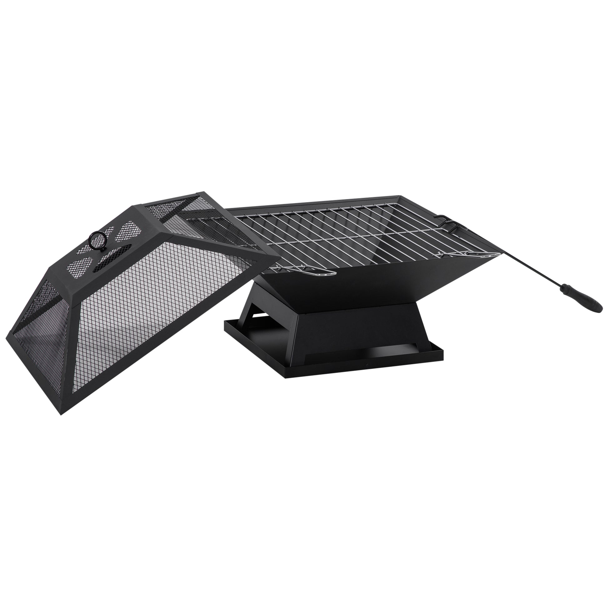 Outsunny Vuurschaal 45 x 45 x 34 cm RVS Vuurkorf met Vonkenscherm en Pook Vuurschalen Vuurkorf voor Tuin, Balkon, BBQ Camping Zwart