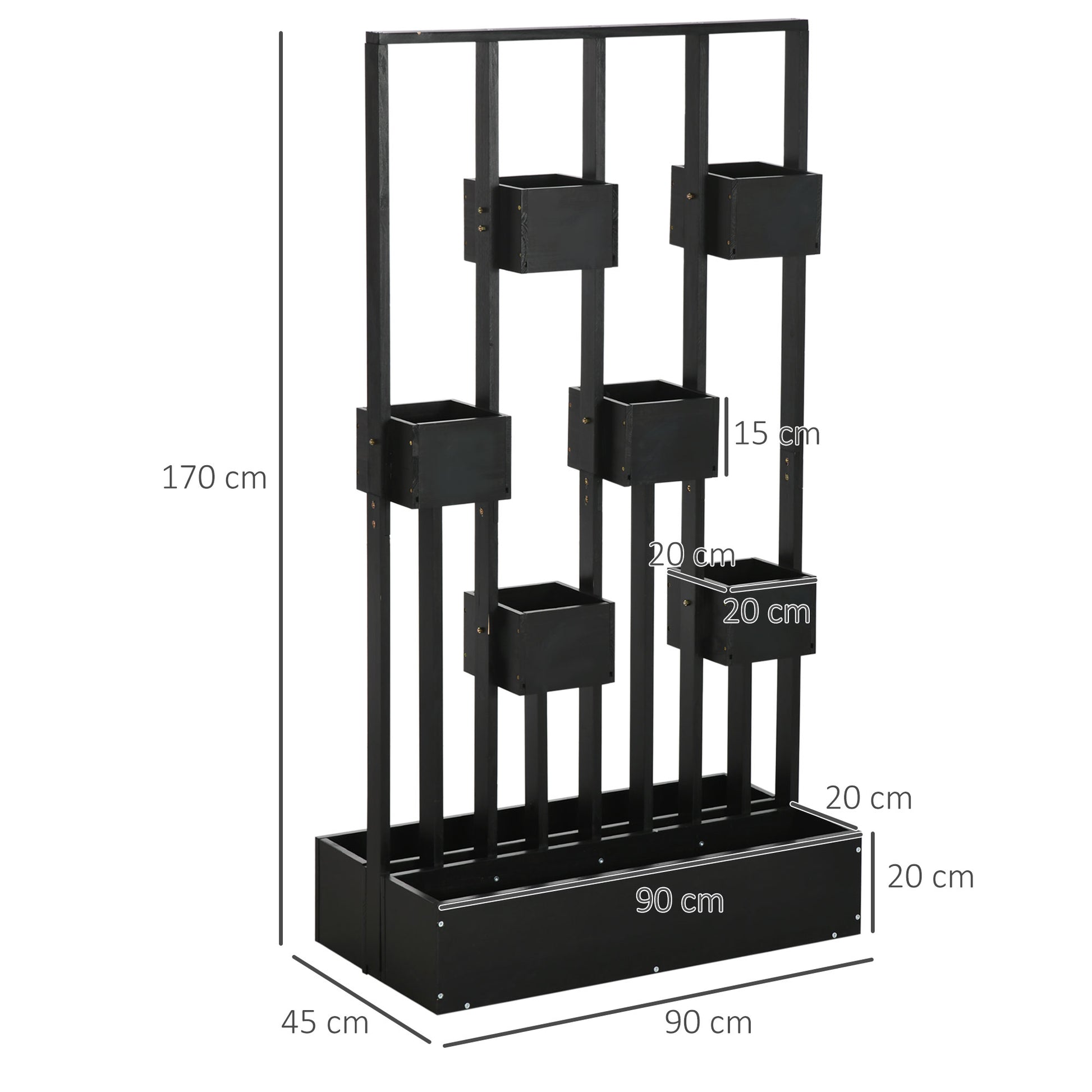 Outsunny plantenbakcombinatie, modulair ontwerp, staand frame, natuurlijk hout, zwart, 90 x 45 x 170 cm