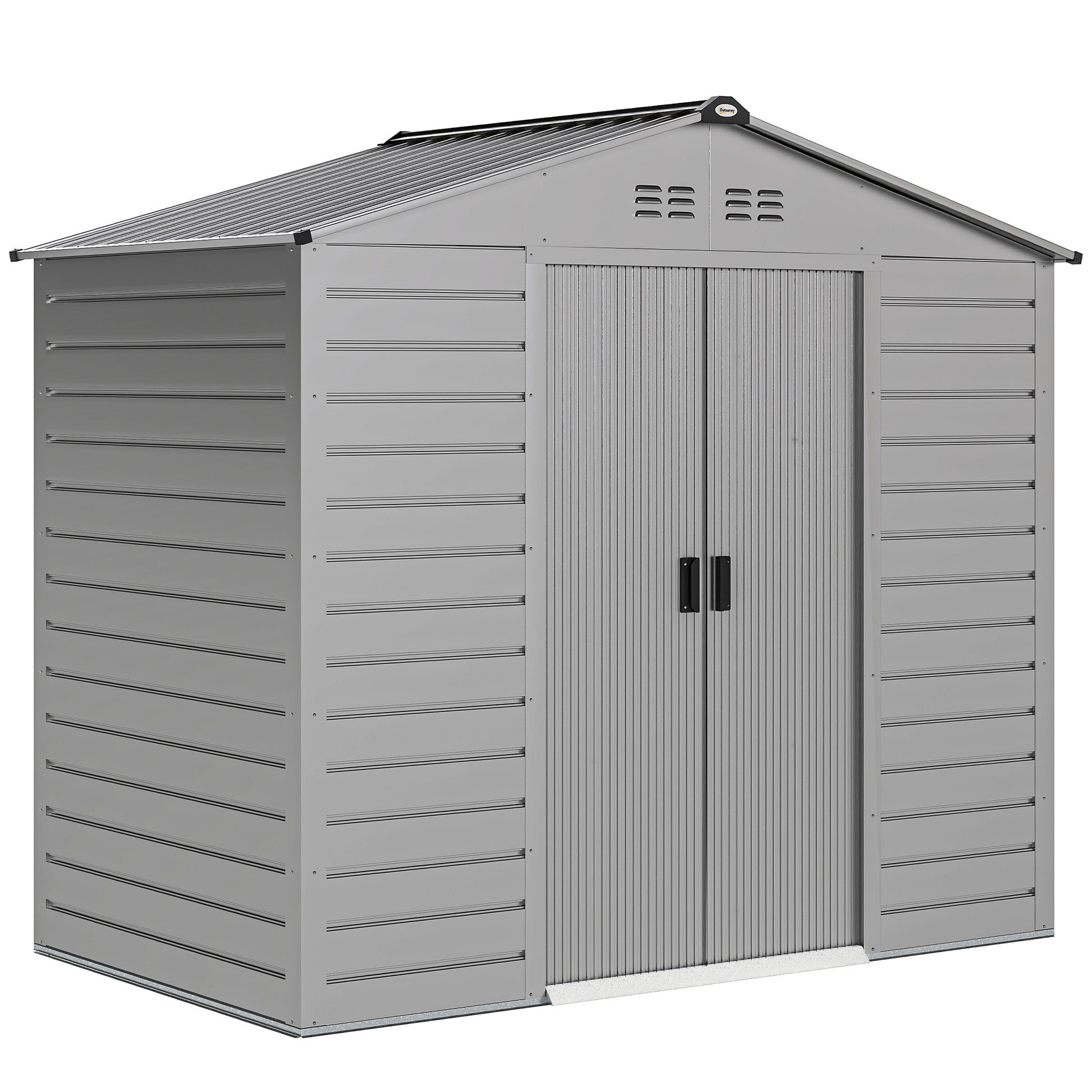 Outsunny 2,43 m tuinhuis, 213 x 131 x 192 cm, gereedschapsschuur met zadeldak, afsluitbare schuifdeur, weerbestendig, grijs