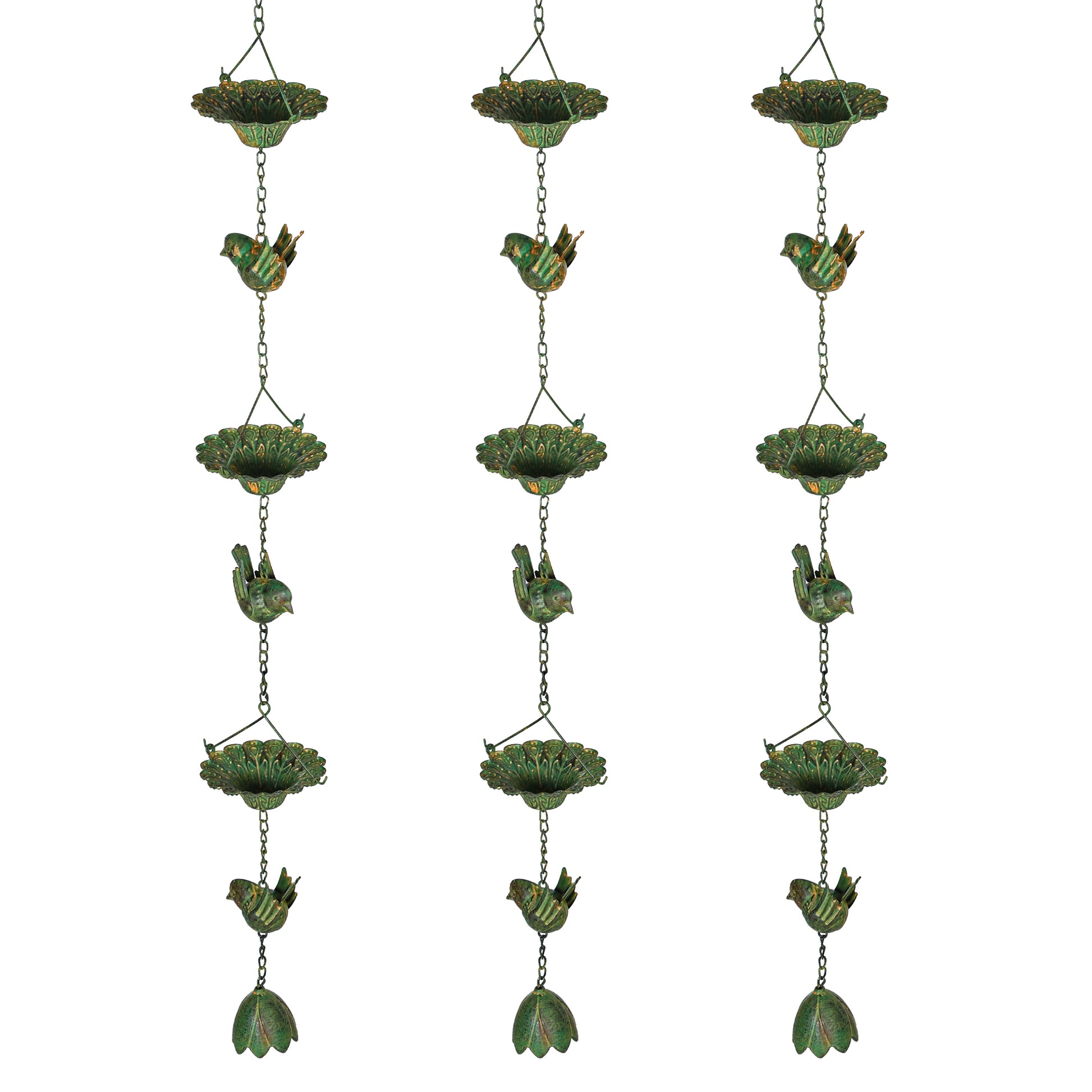 Outsunny 3-delige set regenketting, 123cm, metalen regenafvoerketting met ophangoog, vogelmotief, belgroen